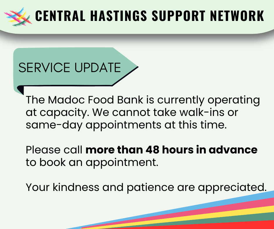 The Central Hastings Support Network (CHSN) is a registered, non-profit corporation that delivers programs for the benefit of the Central Hastings community. Programs are developed to meet the needs of people suffering from a lack of adequate resources, poverty, age, disability or a vulnerability that impedes their participation in the greater community.